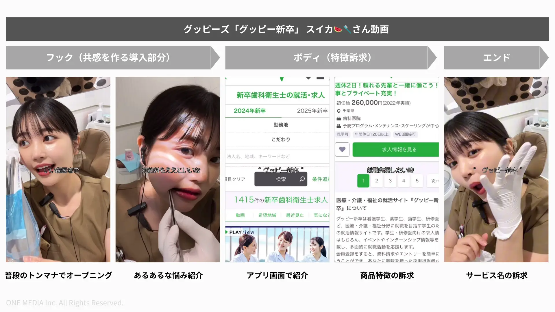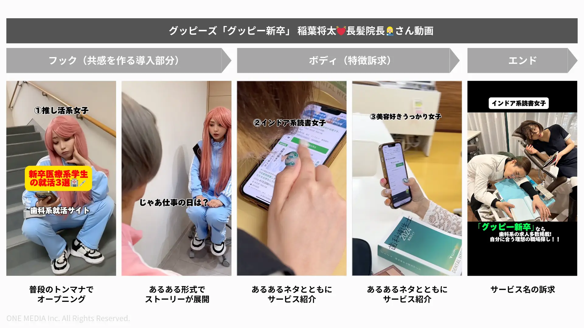 「#歯科衛生士」「#歯科医師」のコミュニティが存在することを発見し、そこで人気のクリエイターを起用したショート動画のプロモーションを設計しました。