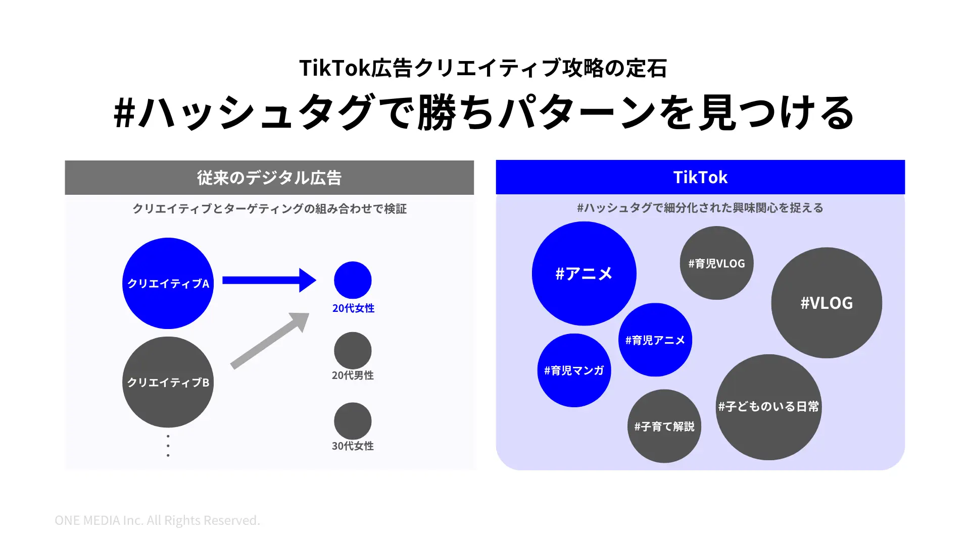 「エコらくパック」は、詰め替えタイプでコンパクトなパッケージが特徴の育児用製品です。商品認知を向上するため、2022年より通年でTikTokのプロモーションを継続し、生活者との接点を持ち続けてきました。特にクリエイティブにおいては、日常的な悩みとともに商品特徴を訴求できる「#育児VLOG」フォーマットの動画が “勝ちパターン” となっていました。
